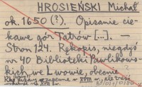 HROSIEŃSKI Michał ok. 1650 (?) Opisanie ciekawe gór Tatróe [...].