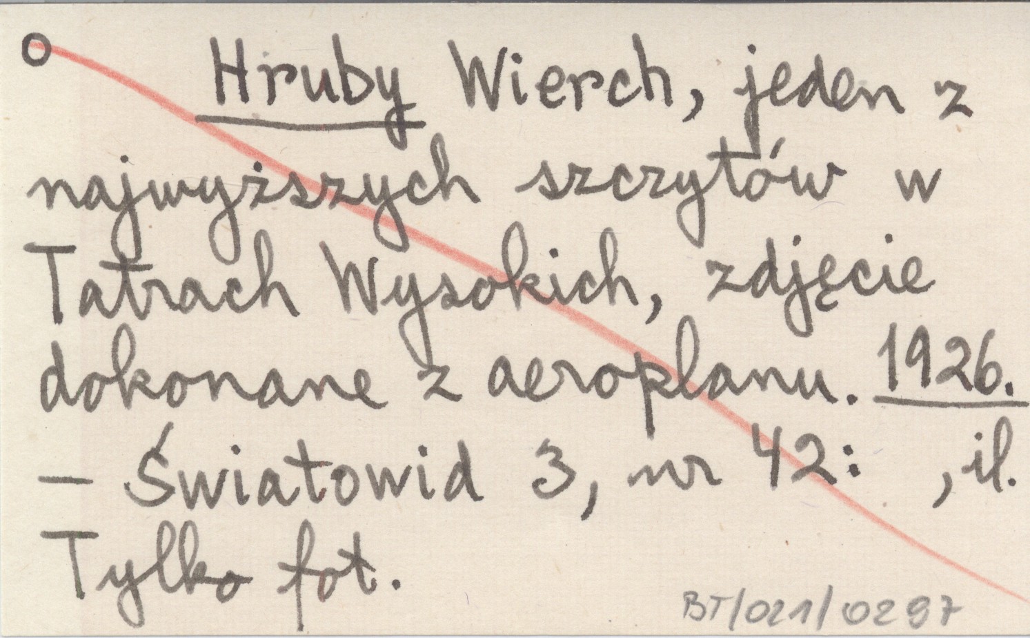 Hruby Wierch, jeden z najwyższych szczytów w Tatrach Wysokich, zdjęcie dokonane z aeroplanu. 1926