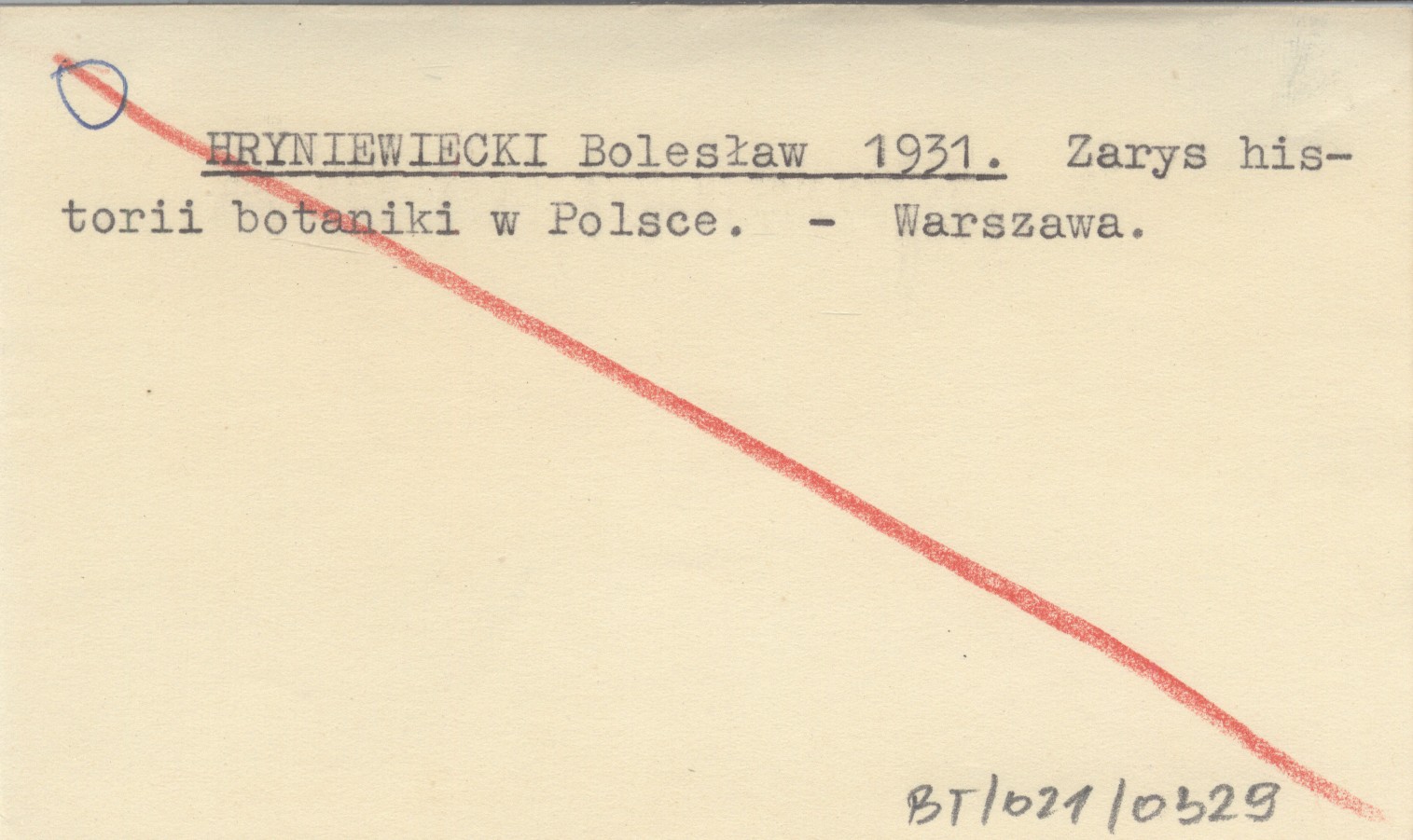 HRYNIEWIECKI Bolesław 1931 Zarys historii botaniki w Polsce.