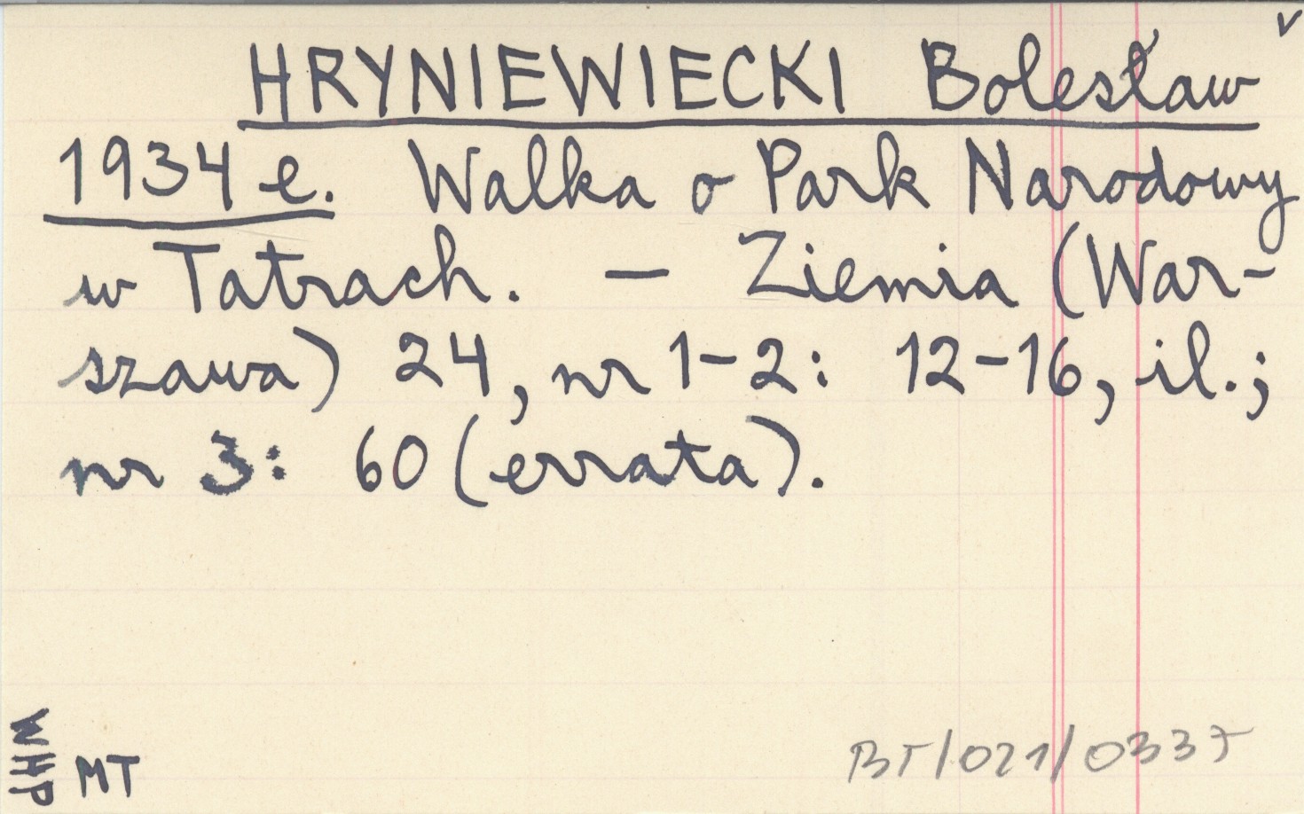 HRYNIEWIECKI Bolesław 1934 e Walka o Park Narodowy w Tatrach.
