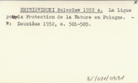 HRYNIEWIECKI Bolesław 1932 a La Ligue pourla Protection de la Nature en Pologne.
