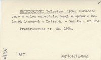 HRYNIEWIECKI Bolesław 1934 Kukułcze jaje w orlem gnieździe. Uwagi w sprawie kolejek linowych w Tatrach.