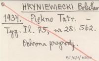 HRYNIEWIECKI Bolesław 1934 b Niszczyciele przyrody górskiej i jedyny ich obrońca.