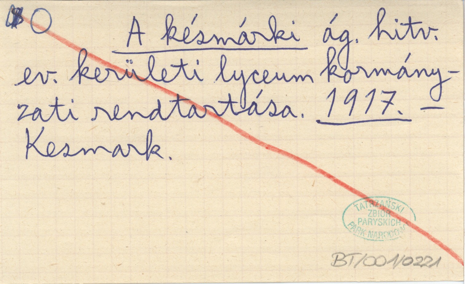 A késmárki ág. hitv. ev. kerületi lyceum kormányzati rendtartása. 1917