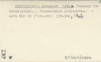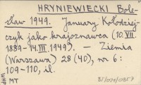 HRYNIEWIECKI Bolesław 1950 a January Kołodziejczyk... Wspomnienie pośmiertne.