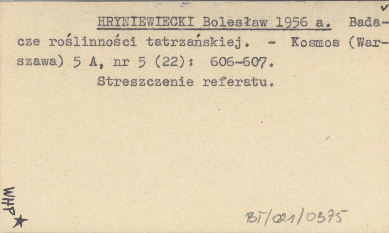 HRYNIEWIECKI Bolesław 1956 a Badacze roślinności tatrzańskiej.