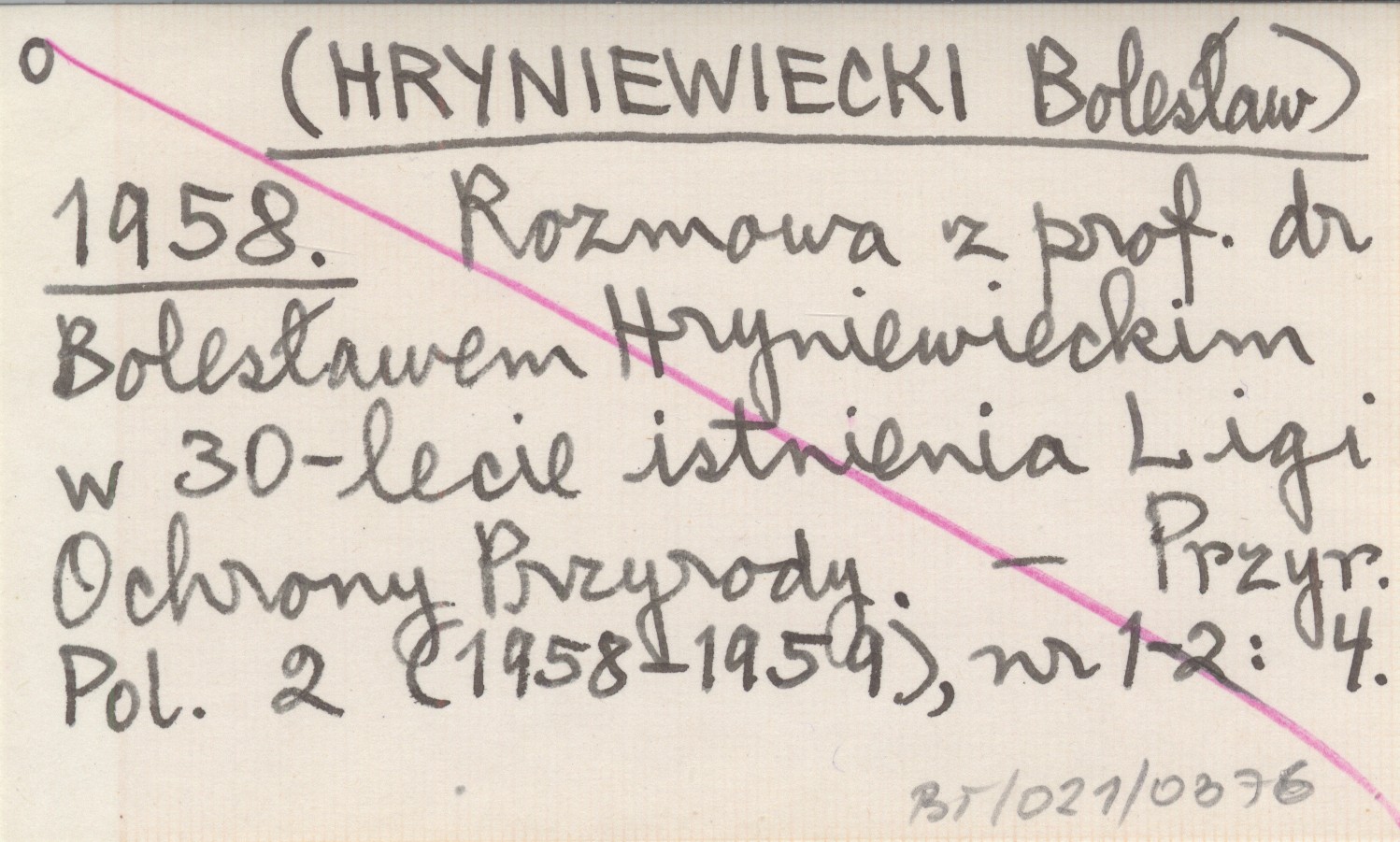 (HRYNIEWIECKI Bolesław) 1958 Rozmowa z prof. dr Bolesławem Hryniewieckim w 30-lecie istnienia Ligi Ochrony Przyrody.