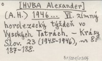 (A. H.) [HUBA Alexander] 1946... VI. zimnę horolezeckę tęŸdeò vo Vysokęch Tatrách.