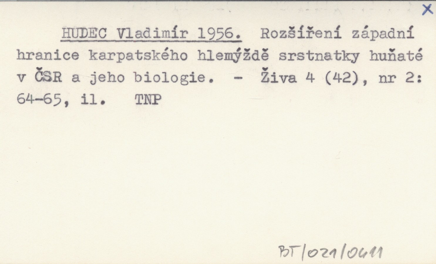HUDEC Vladimír 1956 Rozšíření západní hranice karpatského hlemýždě srstnatky huňaté v ČSR a jeho biologie.