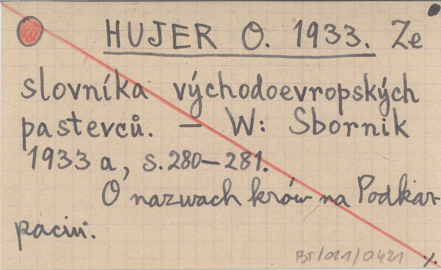 HUJER O. 1933 Ze slovníkq východoevropských pastevců.