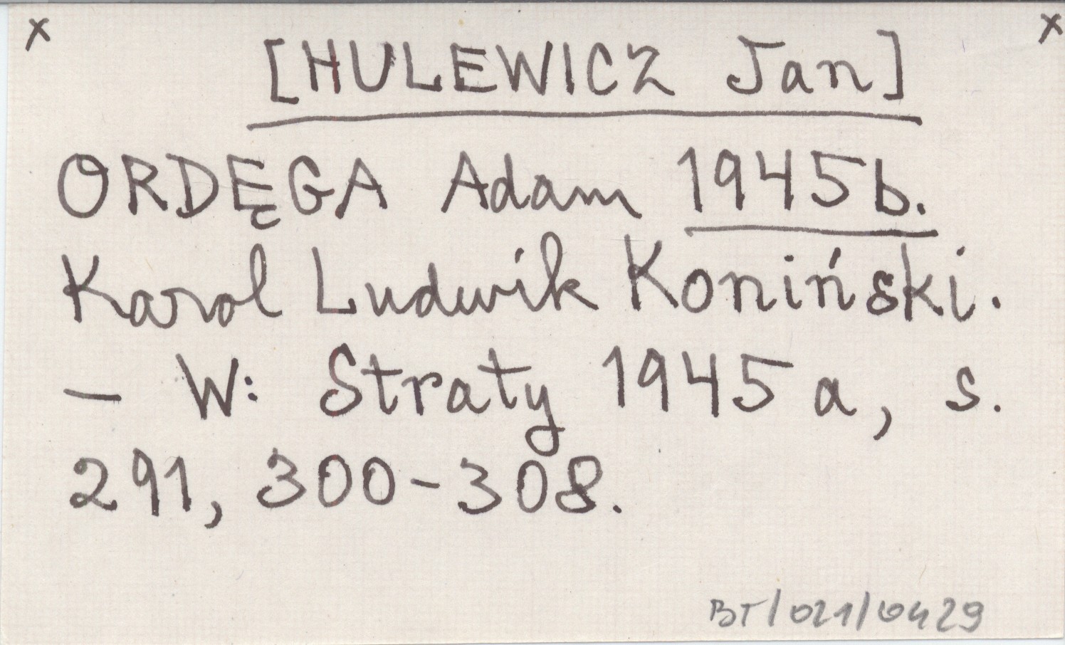 ORDĘGA Adam [HULEWICZ Jan] 1945 b Karol Ludwik Koniński.