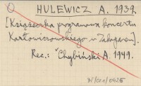 HULEWICZ A. 1939 [Książeczka programowa koncertu Karłowiczowskiego w Zakopanem].