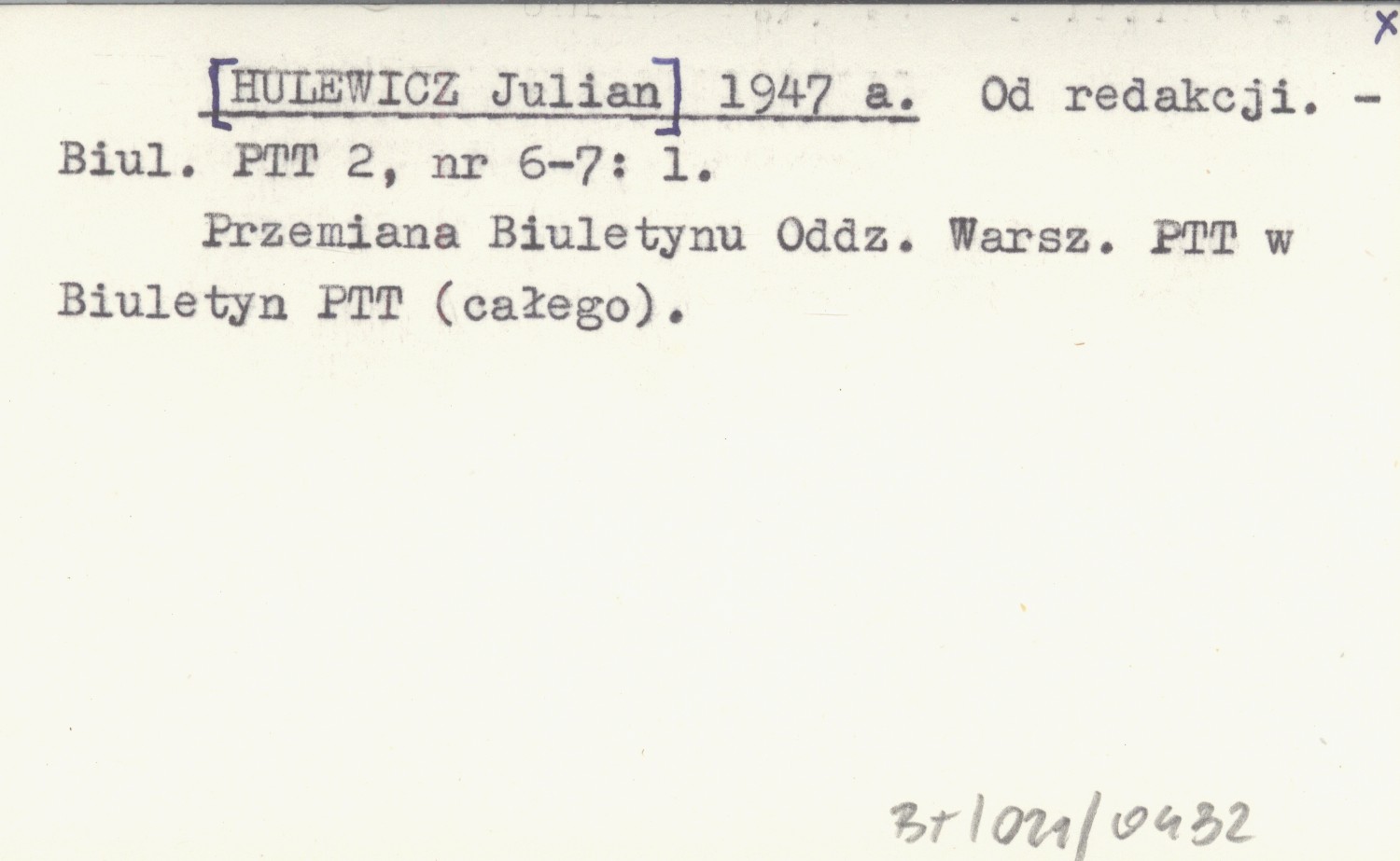 Biuletyn PTT, 2, nr 6-7: 1. Przemiana Biuletynu Oddziału Warszawskiego PTT w Biuletyn PTT (całego).