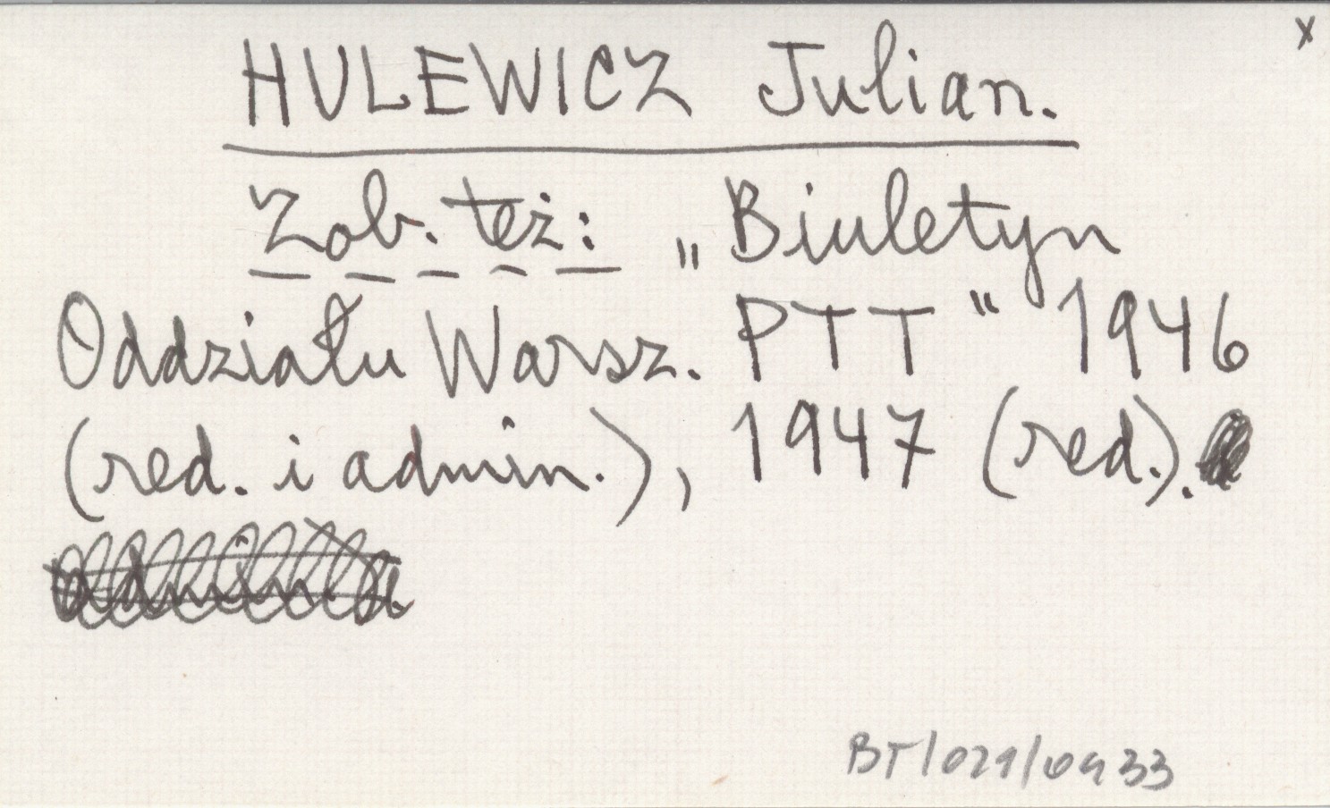"Biuletyn Oddziału Warszawskiego PTT" 1946 (red. i admin), 1947 (red.)