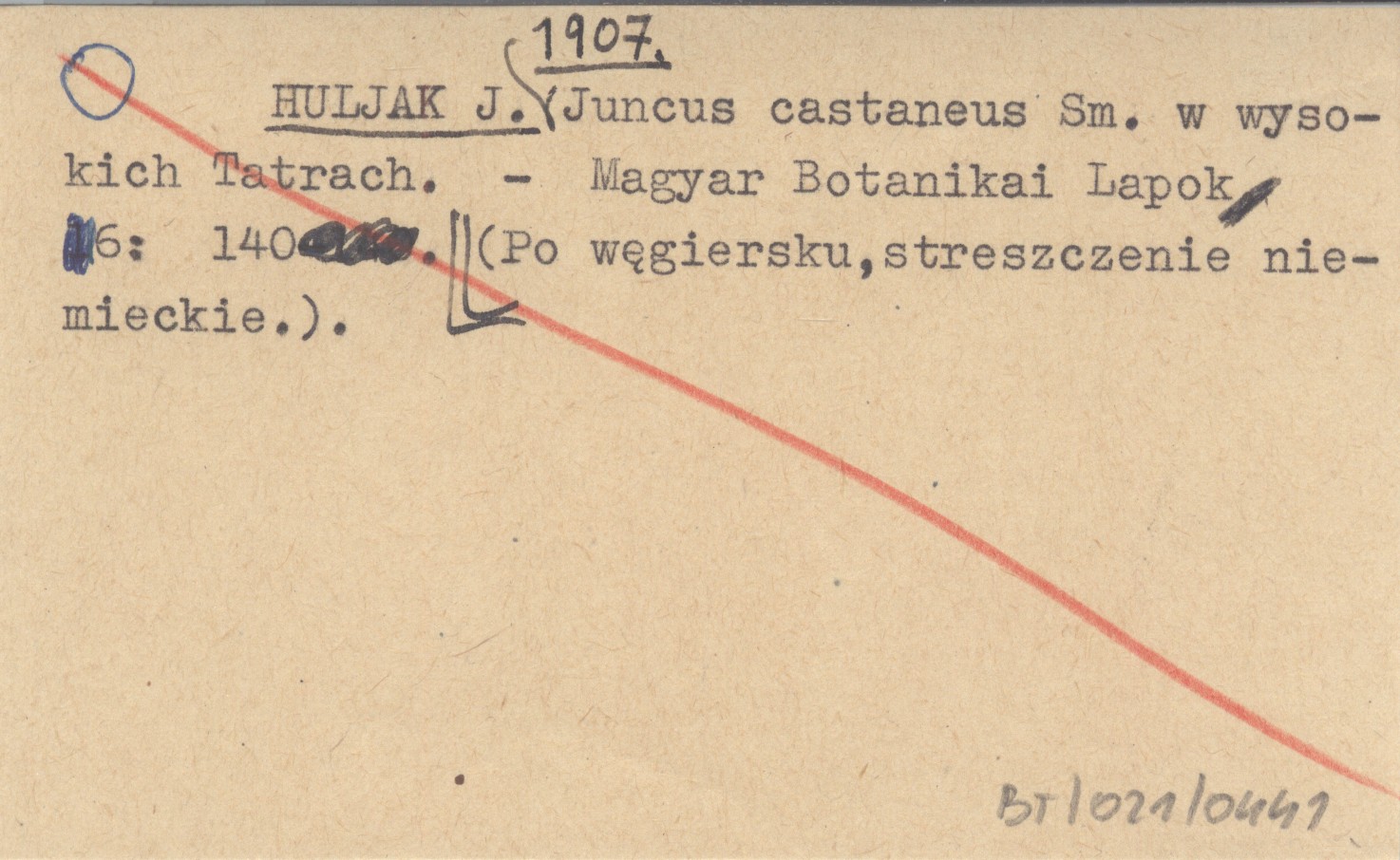 HULJAK J, 1907 Juncus castaneus Sm. w wysokich Tatrach.