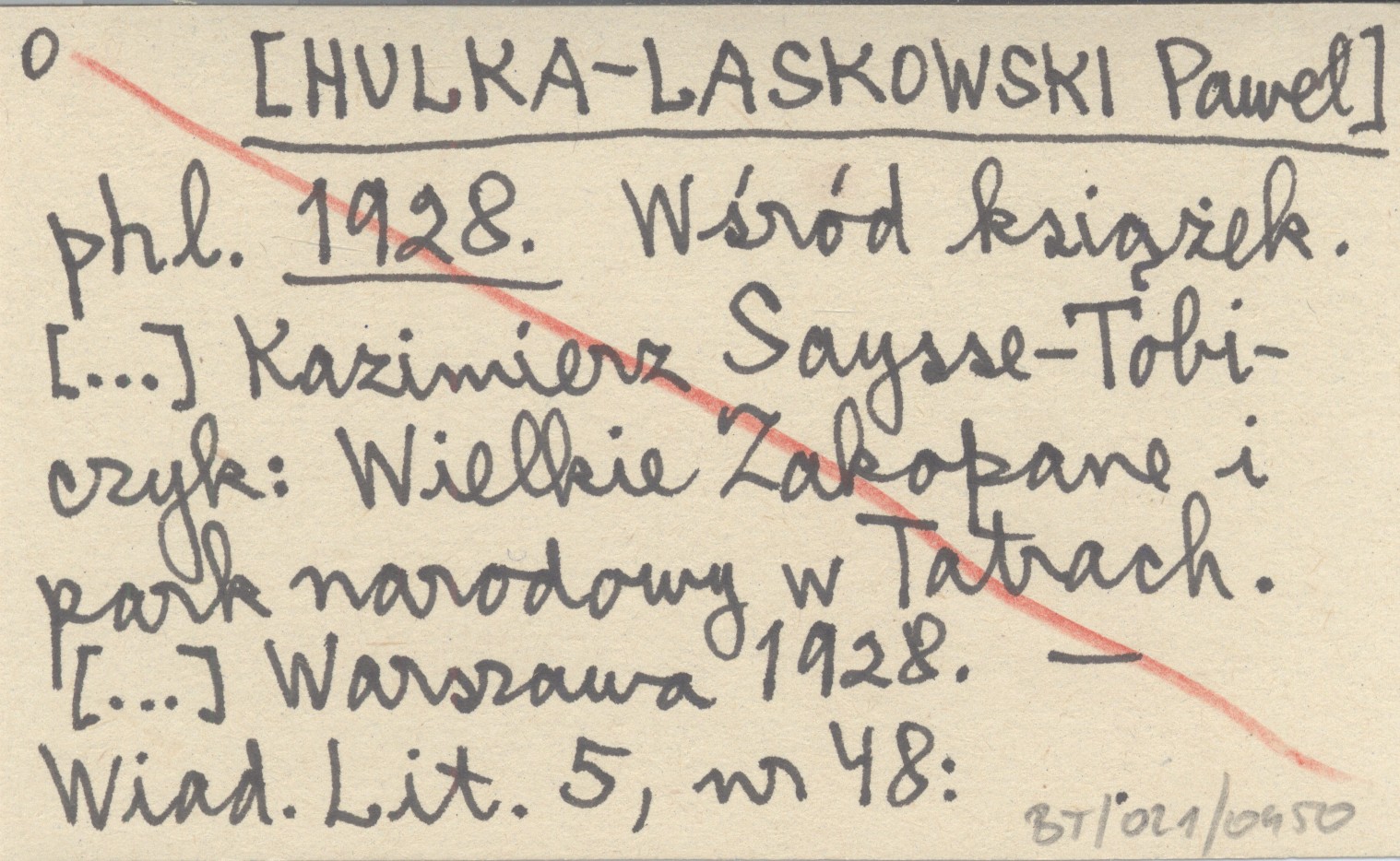 phl. [HULKA-LASKOWSKI Paweł] 1928 Wśród książek. [...] Kazimierz Saysse-Tobiczyk: Wielkie Zakopane i park narodowy w Tatrach. [...] Warszawa 1928.