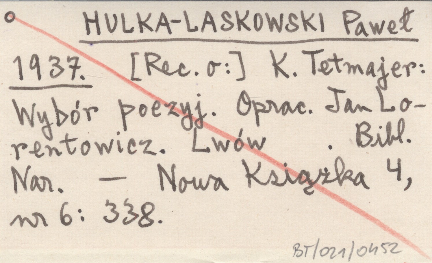 HULKA-LASKOWSKI Paweł 1937 K. Tetmajer: Wybór poezyj. Oprac. Jan Lorentowicz. Lwów. Bibl. Nar.