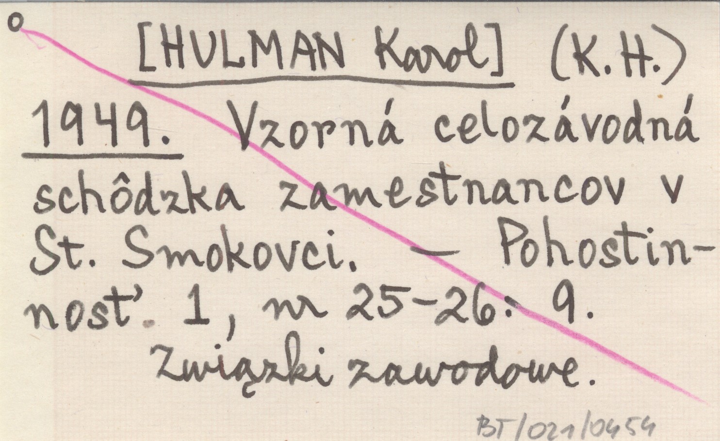 (K. H.) [HULMAN Karol] 1949 Vzorná celozávodná schôdzka zamestnancov v St. Smokovci.