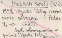 (K. H.) [HULMAN Karol] 1949 Vysoké Tatry vzorne plnia záväzky.