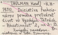 -K. H.- [HULMAN Karol] 1950 Iniciatíva funkcionárov pomáha ptervára» ľivot vo Vysokých Tatrách.