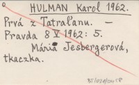 HULMAN Karol 1962 Prvá z Tatraµanu.