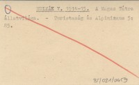 HULYÁK V. 1914-15 A Magas Tátra állatvilága.