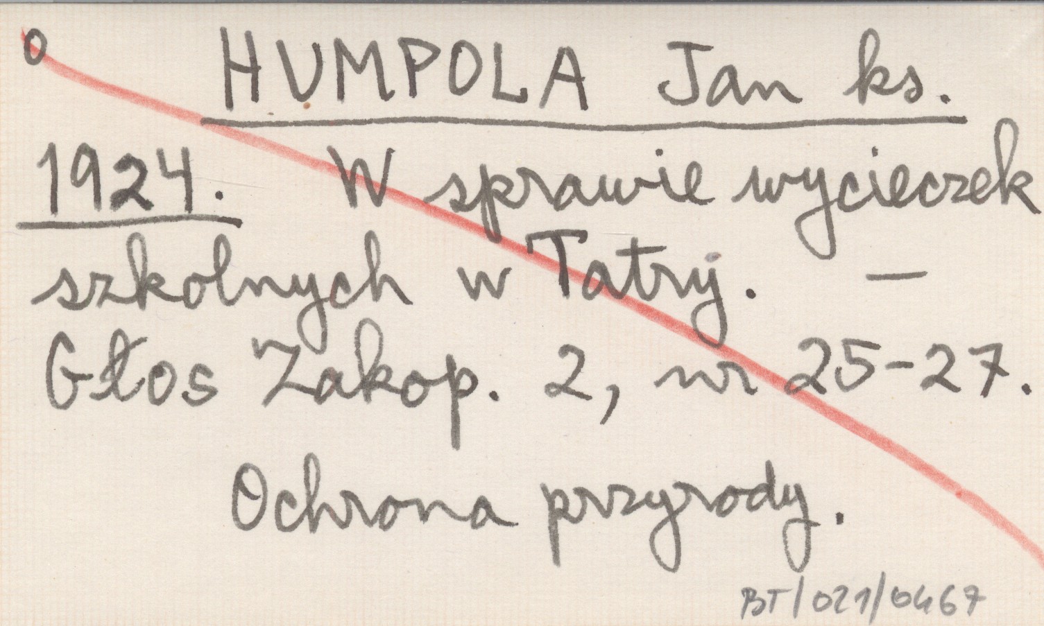 HUMPOLA Jan ks. 1924 W sprawie wycieczek szkolnych w Tatry.