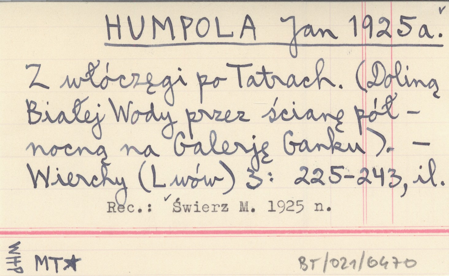 HUMPOLA Jan 1925 a Z włóczęgi po Tatrach. (Doliną Białej Wody przez ścianę północną na Galerję Ganku).