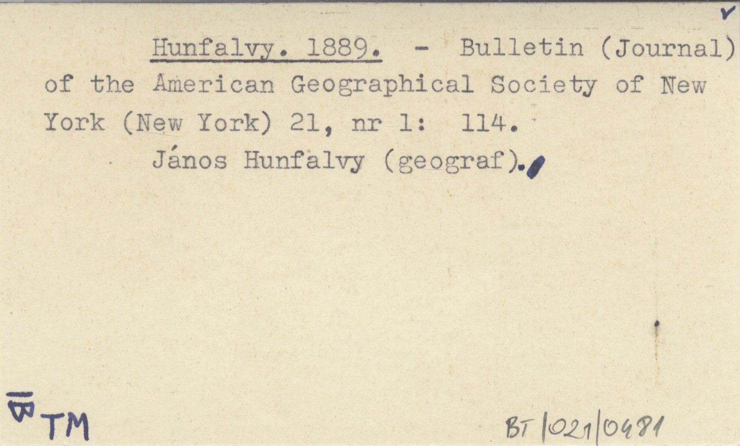 Bulletin (Journal) of the American Geographical Society of New York (New York) , 21, nr 1: 114. János Hunfalvy (geograf).