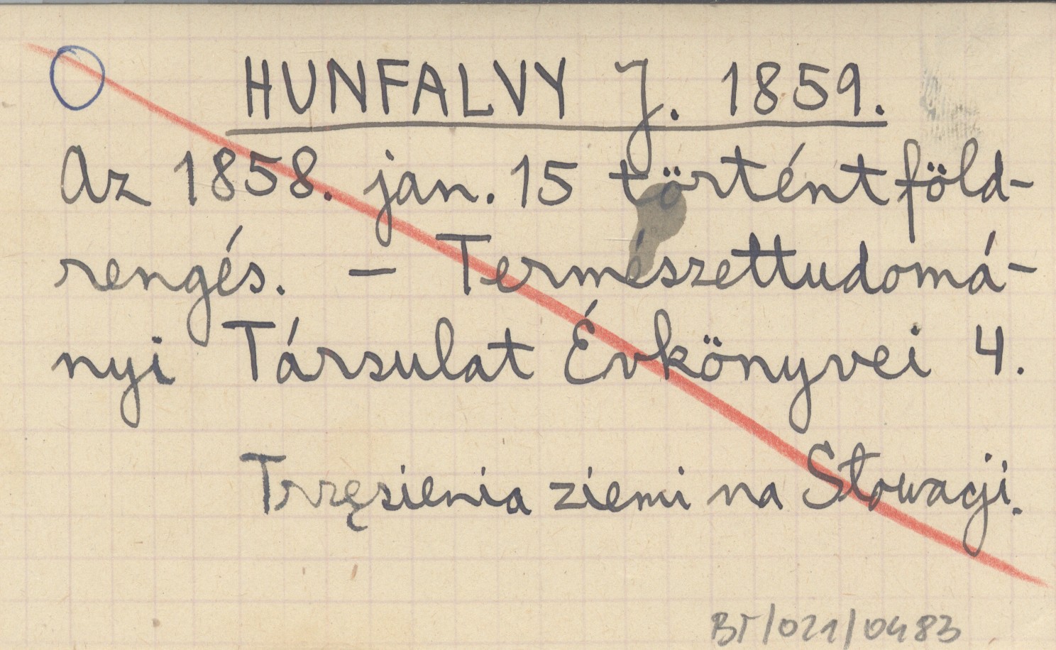 HUNFALVY J. 1859 Az 1858. jan. 15 történtföldrengés.