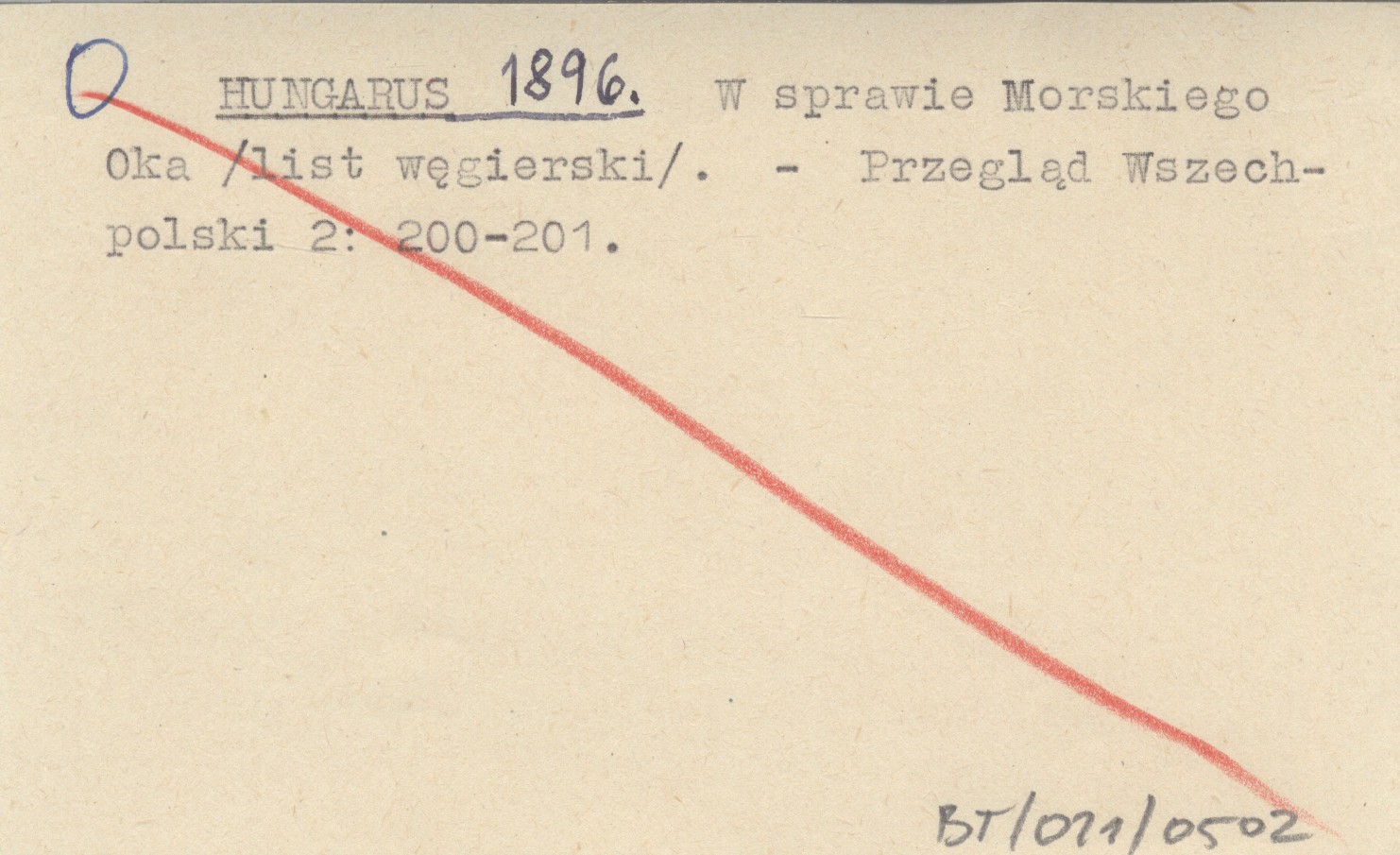 HUNGARUS 1896 W sprawie Morskiego Oka (list węgierski).