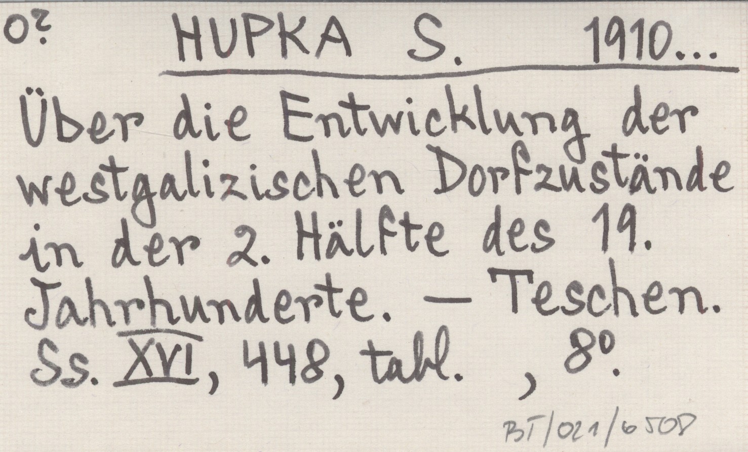 HUPKA S. 1910... Über die Entwicklung der westgalizischen Dorfzustände in der 2. Hälfte des 19. Jahrhunderte.