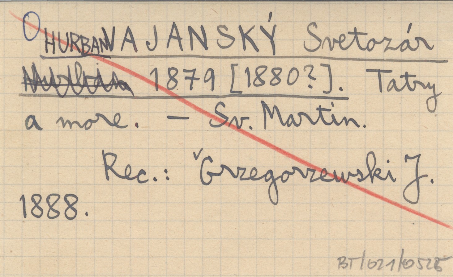 HURBAN VAJANSKÝ Svetozár 1879 [1880?] Tatry a more.