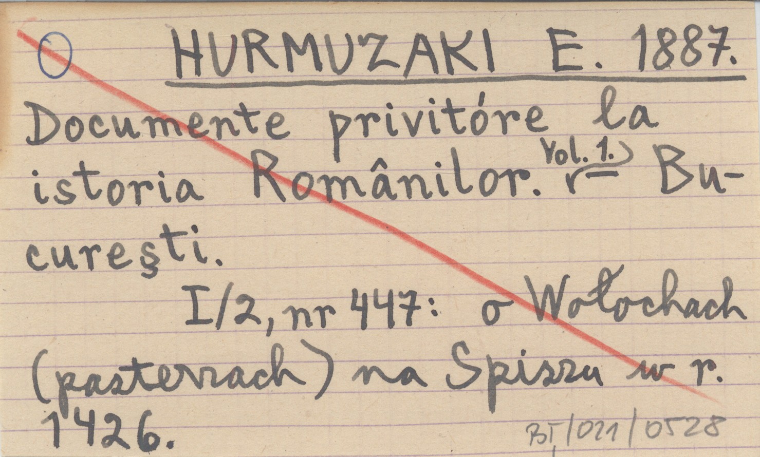 HURMUZAKI E. 1887 Documente privotóre la istoria Românilor. Vol. 1.