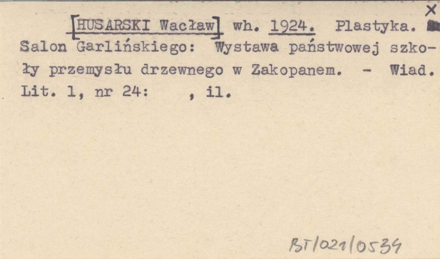 wh. [HUSARSKI Wacław] 1924 Plastyka. Salon Garlińskiego: Wystawa państwowej szkoły przemysłu drzewnego w Zakopanem.