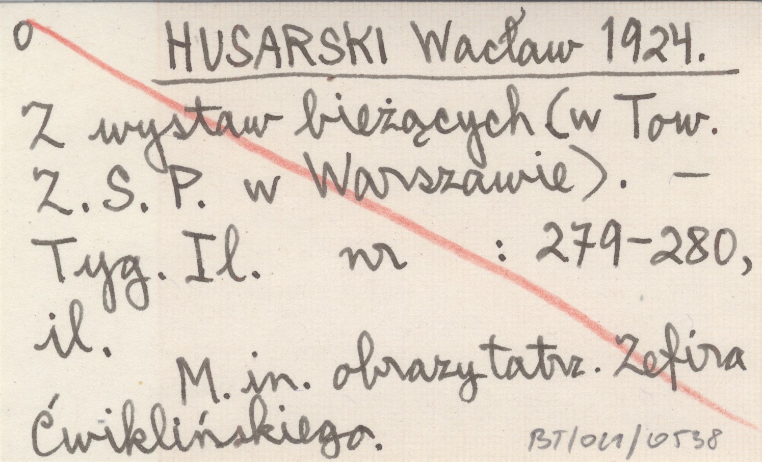 HUSARSKI Wacław 1924 Z wystaw bieżących (w Tow. Z.S.P. w Warszawie).