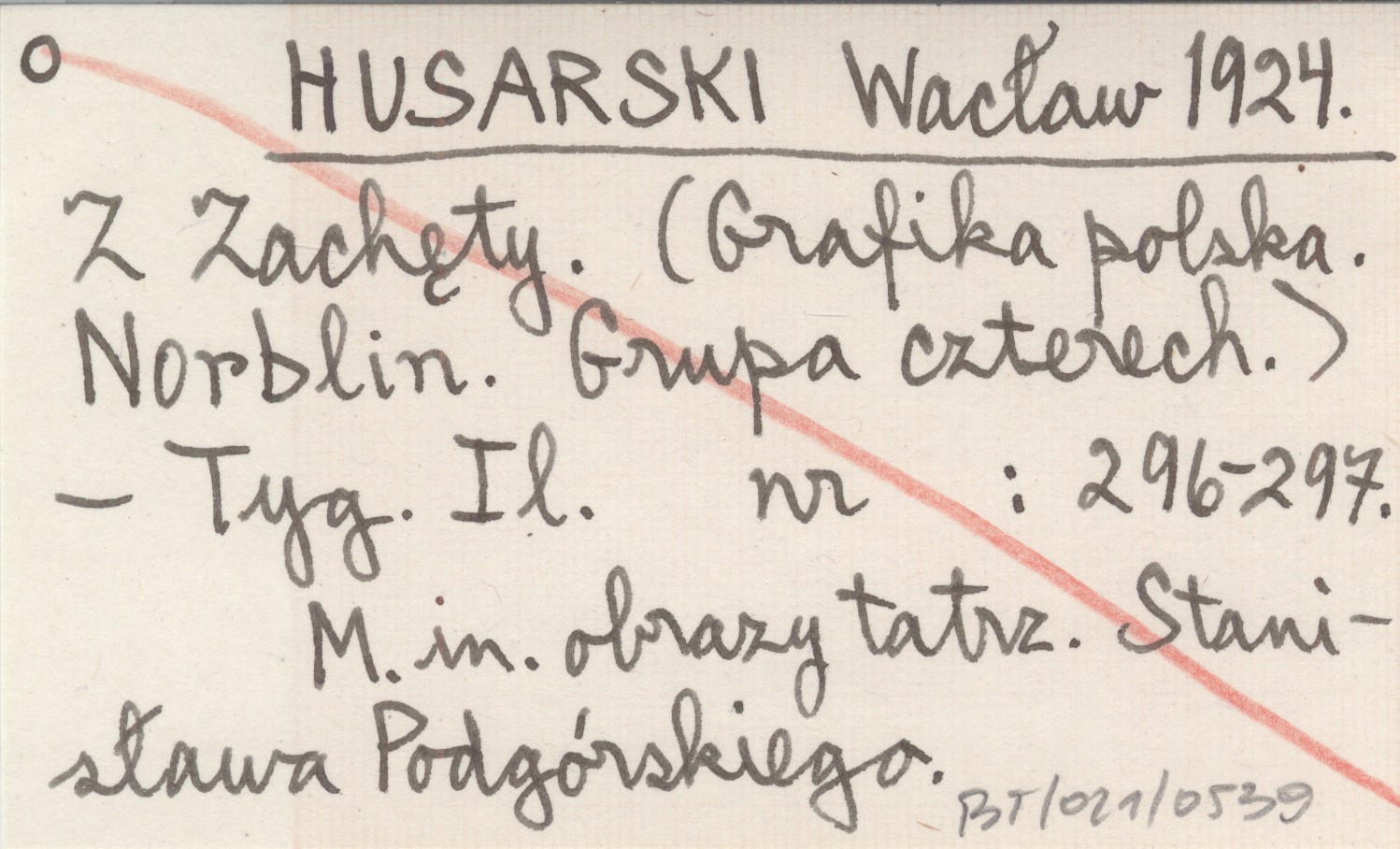 HUSARSKI Wacław 1924 Z Zachęty. (Grafika polska. Norblin. Grupa czterech).