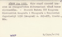 HÚSEK Jan 1933 Vliv staré uherské hranice na etnografickou diferenciaci téhoľ kmene slovenského.