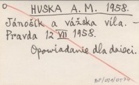 HUSKA A. M. 1958 Jánoąík a váľska víla.