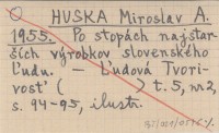 HUSKA Miroslav A. 1955 Po stopách najstarąích výrobkov slovenského µudu.