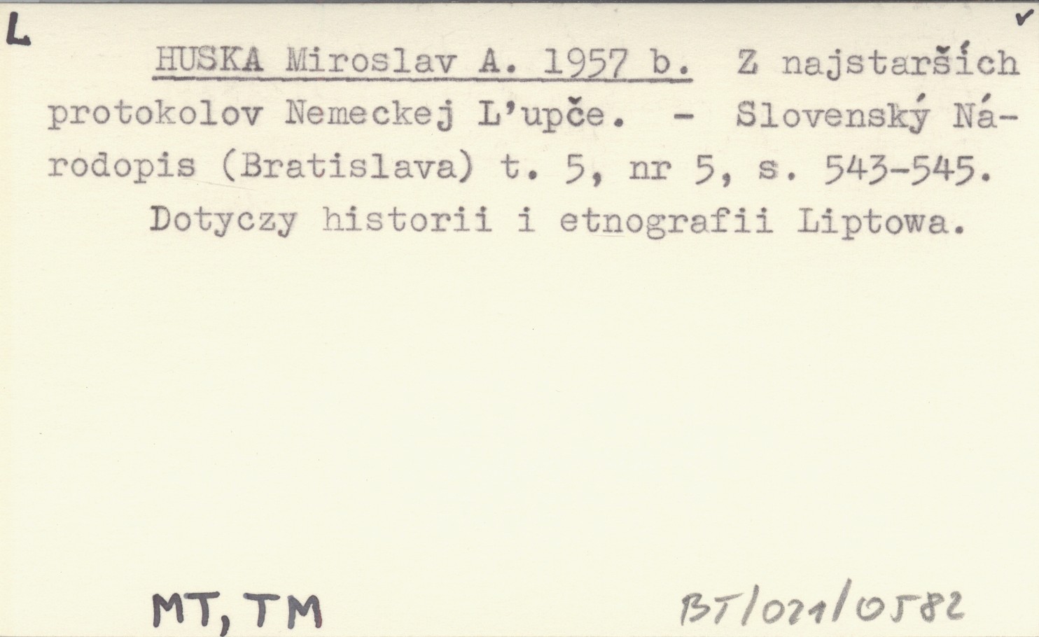 HUSKA Miroslav A. 1957 b Z najstarších protokolov Nemeckej Ľupče.