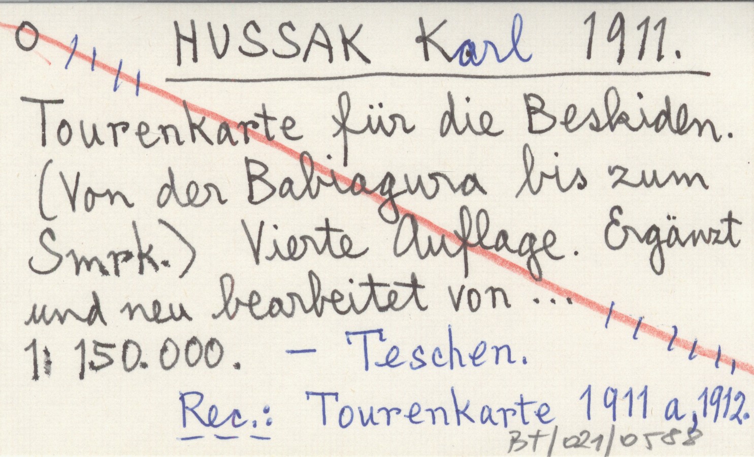 HUSSAK Karl 1911 Tourenkarte für die Beskiden. (Von der Babiagura bis zum Smrk.) Vierte Auflage. Ergänzt und neu bearbeitet von ... 1:150 000.