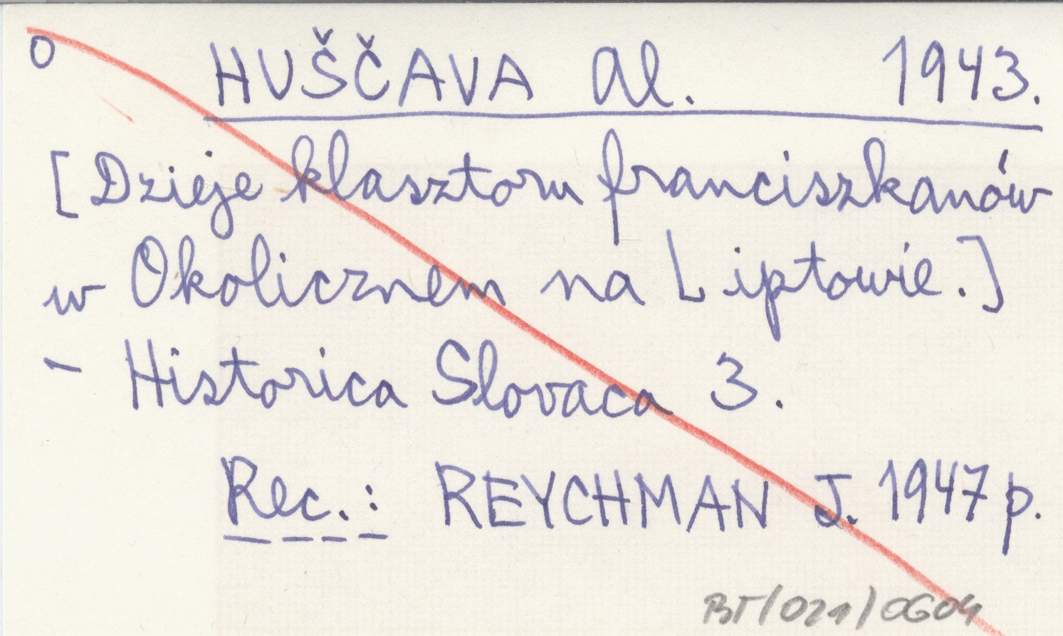 HÚŠČAVA Al. 1943 [Dzieje klasztoru franciszkanów w Okolicznem na Liptowie].