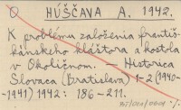 K problému zaloľenia frantiąkánskeho kláątora a kostola v Okoličnom.