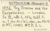 HUTCHINSON Alexander H. 1872 Try Cracow and the Carpathians.