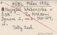 HÜBL Milan 1956 Najvyąąí hřebenovka v ČSR.