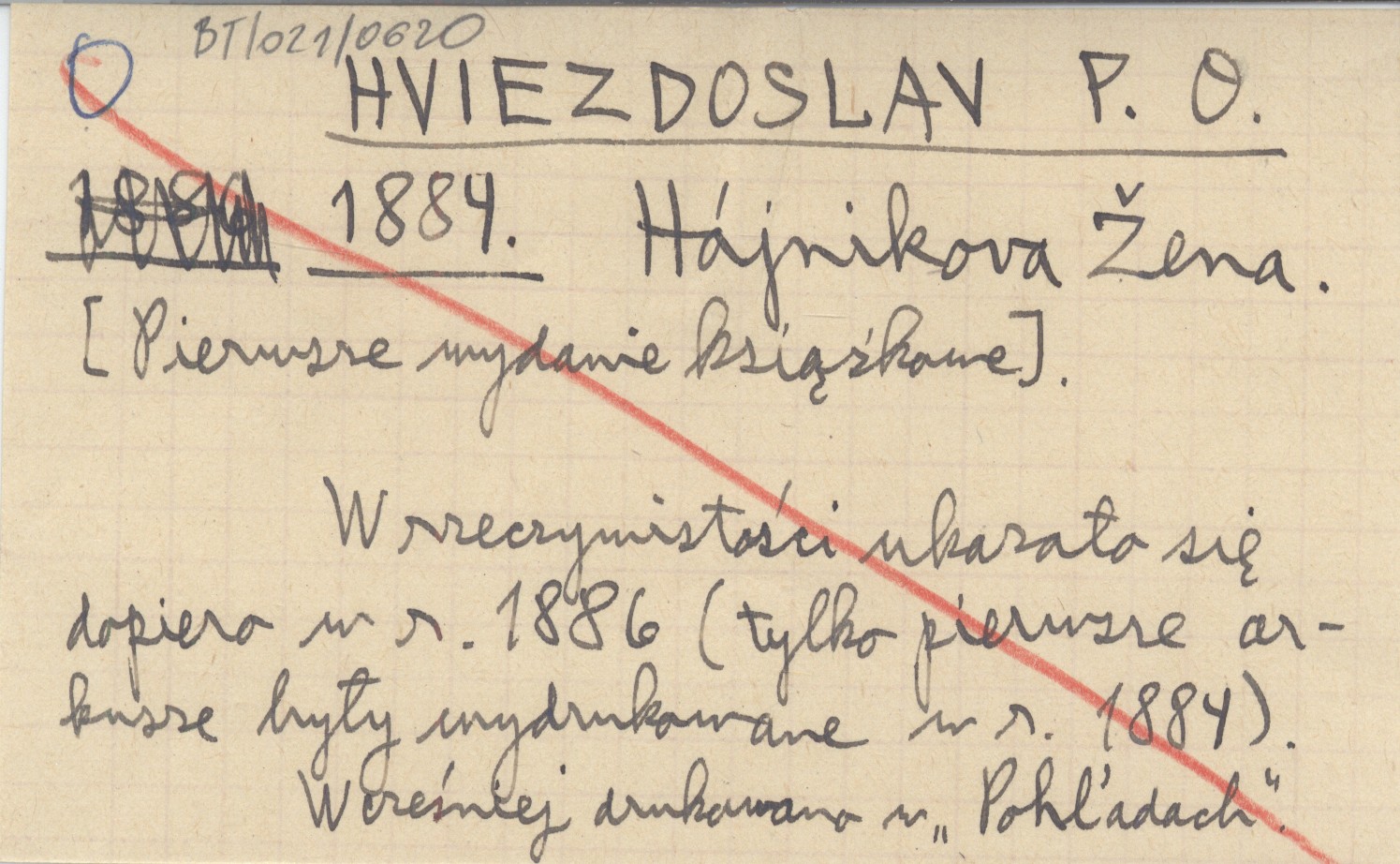 , [Pierwsze wydanie książki]. W rzeczywistości ukazało się dopiero w r. 1886 (tylko pierwsze arkusze były wydrukowane w r. 1884). Wcześniej drukowano w "Pohľadach". REC: Mečiar Stanislav, Sborník Matice Slovenskej (Turčiansky Svätý Martin) 14 (1936), nr 3-4: 507-529.