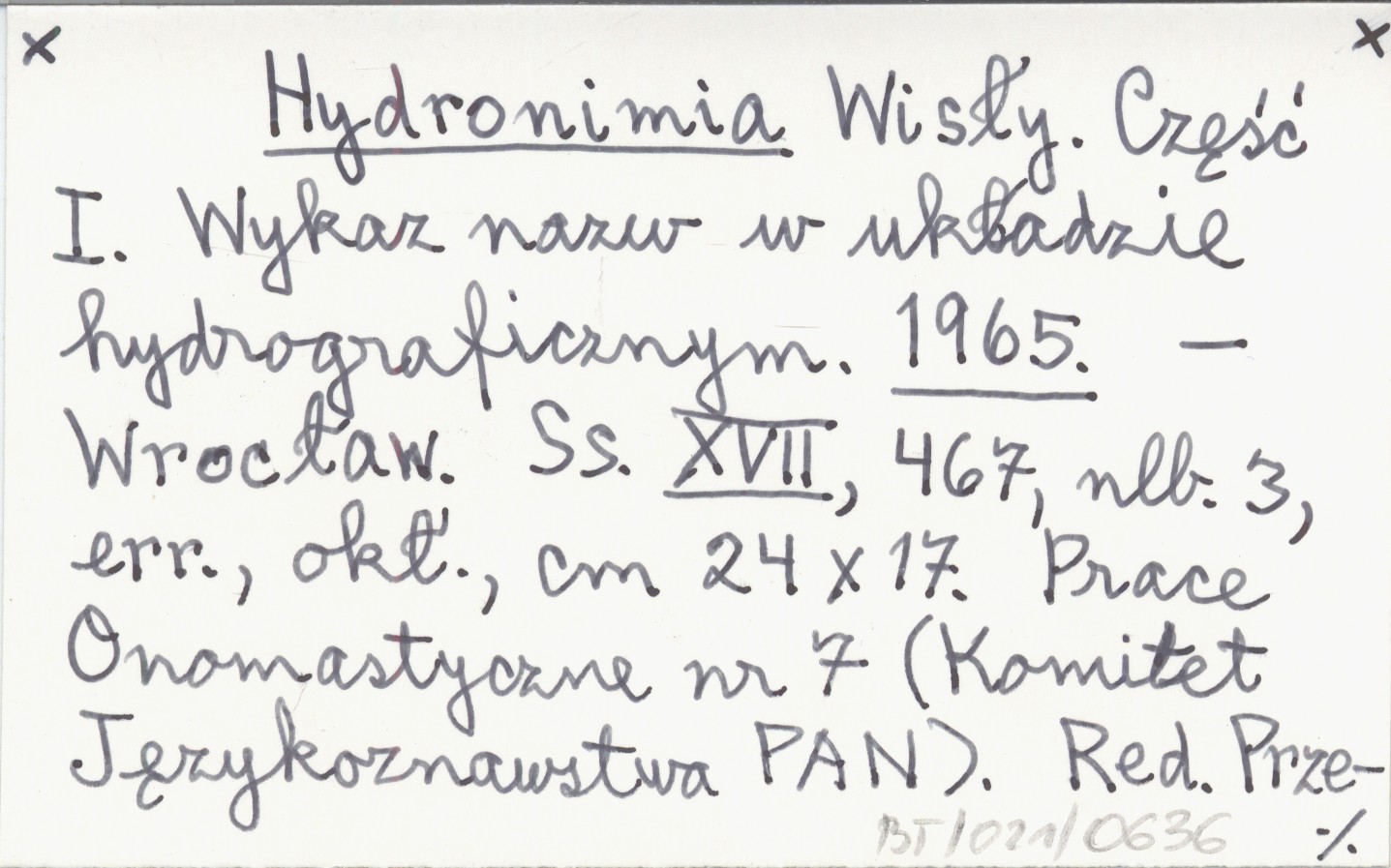 Wrocław (Prace Onomastyczne ; 7 (Komitet Językoznawstwa PAN)) , XVII s., 467, [3], err., okł., 24x17 cm. Autorzy: Marian Jurkowski, Janusz Rieger, Przemysław Zwoliński.