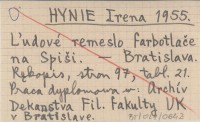 HYNIE Irena 1955 Ľudové remeslo farbotlače na Spiši.