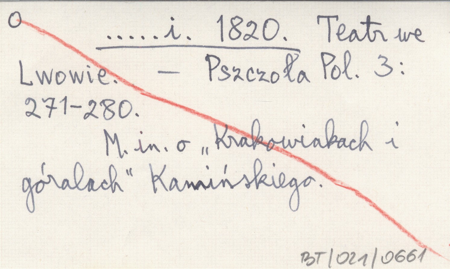 Pszczoła Polska, 3: 271-280. M. in. o "Krakowiakach i góralach" Kamińskiego.